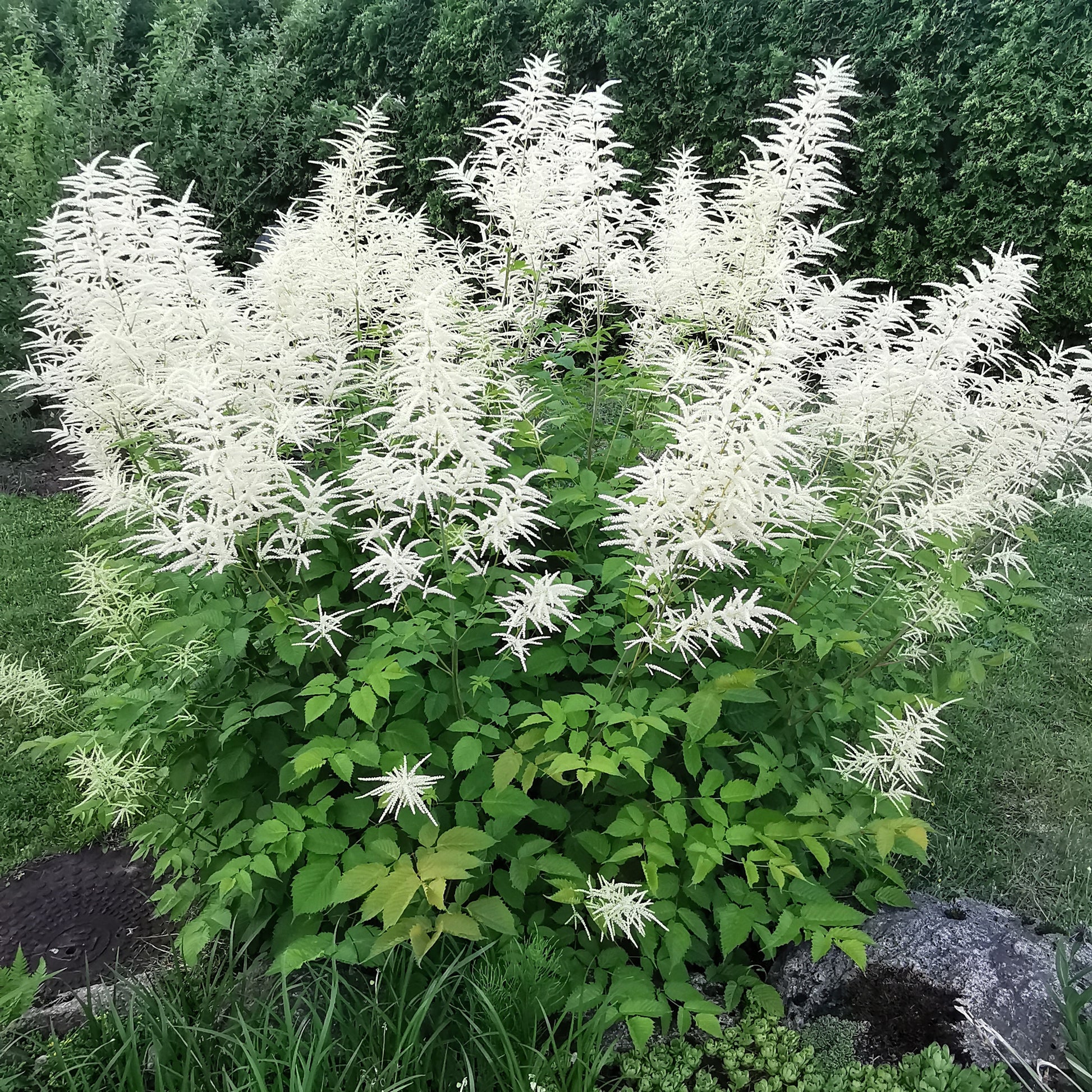 Išraiškingas ir natūraliai elegantiškas daugiametis augalas, vertinamas dėl savo purių baltų žiedynų, kurie vasaros pradžioje sukuria lengvumo ir šviesos įspūdį. Dideli, dekoratyvūs lapai išlieka patrauklūs visą sezoną. Gerai auga tiek saulėje, tiek daliniame pavėsyje, jei tik užtikrinamas pakankamas drėgmės kiekis. Puikiai tinka sodinimui mišriuose daugiamečių augalų gėlynuose, prie vandens telkinių, palei takus ar kaip vertikalus akcentas natūralistinio stiliaus sode. Sodinkite pavieniui arba grupėmis – visuomet atrodys įspūdingai.